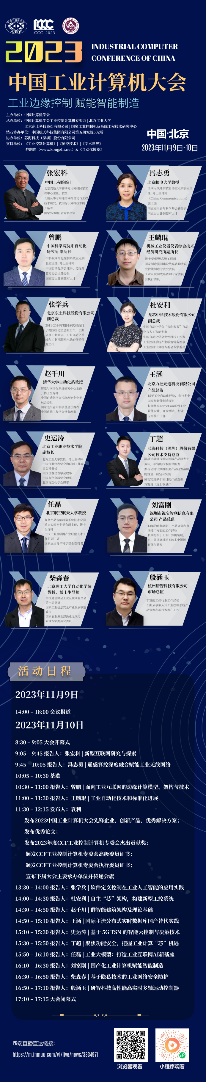 11月10日,2023中国工业计算机大会暨工控机专委第二十届学术年会在北方工业大学成功举办。 11月10日,2023中国工业计算机大会暨工控机专委第二十届学术年会(ICCC2023: INDUSTRIAL COMPUTER CONFERENCE OF CHINA 2023)在北方工业大学成功举办。本次大会的主题是“工业边缘控制,赋能智能制造”。会议由中国计算机学会(CCF)主办、CCF工业控制计算机专委会、北方工业大学、国家工业控制机及系统工程技术研究中心等多家单位联合承办;中国航天科技集团公司五院五〇二所作为钻石协办单位、芯海科技(深圳)股份有限公司作为协办,大力支持本届大会召开。 大会主席由中国科学院杨孟飞院士担任,北方工业大学党委常委、副校长王力担任大会副主席。北方工业大学史运涛教授担任大会组委会主席。北方工业大学党委常委、副校长王力在大会开幕式上致辞,对来自工业计算机领域的专家学者表示诚挚欢迎,介绍了学校办学、科研建设以及工业计算机领域发展情况,希望ICCC2023会议可以为工业计算机领域的专家学者提供展示最新科研成果、交流经验、建立科研合作的平台。中国计算机学会王超副秘书长,五〇二所所长李永分别致辞,预祝大会成功召开。 大会邀请了北京交通大学张宏科院士、北京邮电大学冯志勇教授(杰青)、中国科学院沈阳自动化研究所曾鹏副所长、机械工业仪器仪表综合技术经济研究所王麟琨副所长等工业计算机方面的知名专家学者做了4个精彩的大会主旨报告,分享了新型互联网、工业无线网络、边缘计算、工业自动化技术与标准等工业计算机领域的前沿技术。 大会报告分别由北京航空航天大学任磊教授(杰青)、清华大学赵千川教授(杰青)、北京理工大学柴森春教授、北方工业大学史运涛教授、龙芯中科技术杜安利副总裁、北京东土科技张学兵副总裁等专家学者对工业计算机领域的最新科研、产业成果进行了分享。 大会发布了2023中国工业计算机大会先锋企业、创新产品、优秀解决方案,公布了ICCC2023优秀论文,颁发了2023年度CCF工业控制计算机专委会杰出贡献奖。 作为中国科协《重要学术会议指南(2023)》发布的重要会议,本次大会坚持“高质量、树品牌、促发展”的办会宗旨,围绕大会主题举办学术报告、技术论坛、成果展示等活动,为工业企业数字化、智能化转型升级和应用场景落地提供技术路径和解决方案,推动新一代工控技术在智能制造、智能交通、智慧能源等领域的深度融合应用,加快中国制造高质量发展。