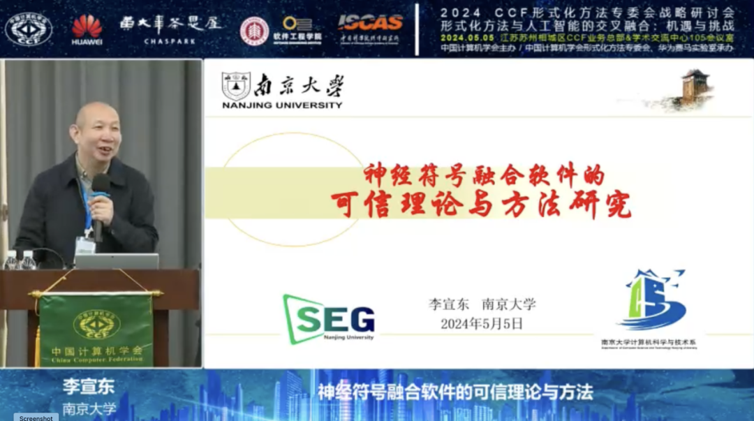2024年月5月5日(星期日),在江苏苏州CCF业务总部&学术交流中心105会议室召开了“2024 CCF形式化方法专委会战略研讨会”,此次研讨会主题为“形式化方法与人工智能的交叉融合:机遇与挑战”,关注“AI for FM”与“FM for AI”两方面的机遇与挑战。此次研讨会吸引了来自高校、研究所、工业界共60余名专家参加。