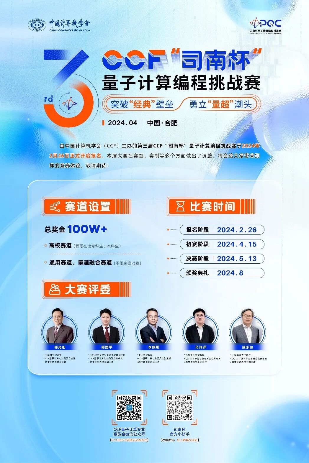 由中国计算机学会(CCF)主办的第三届CCF“司南杯”量子计算编程挑战赛于2月26日开启报名,4月14日报名截止。
