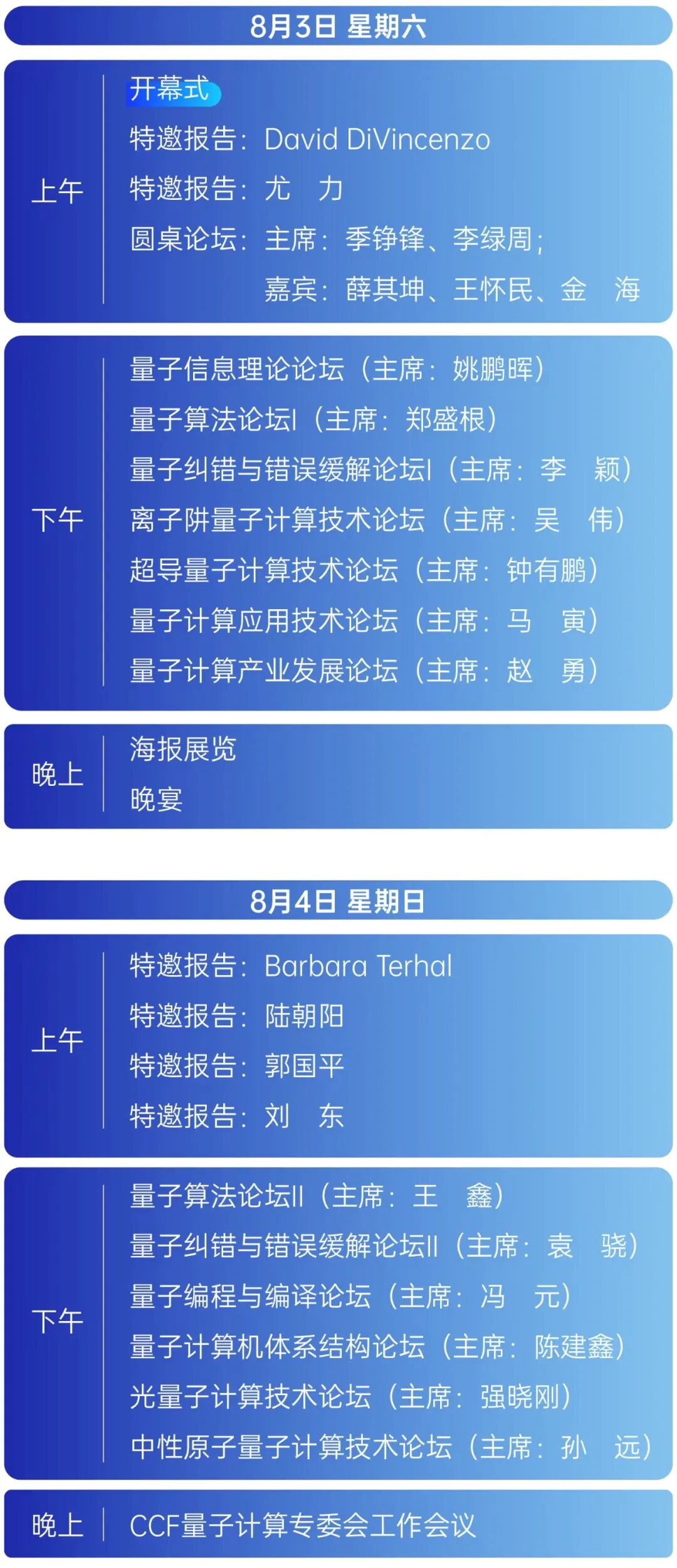 2024年8月3-4日,以“量子计算与计算机学科的交融共进”为主题的第三届(2024年)CCF量子计算大会(CQCC2024)将在长沙·北辰国际会议中心举行。现公布大会基本日程及各专题论坛简介。