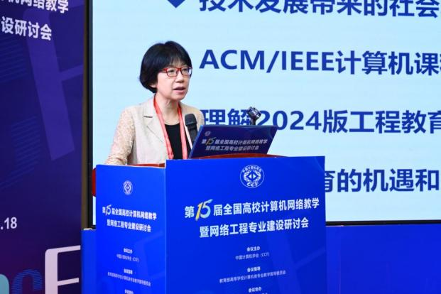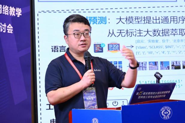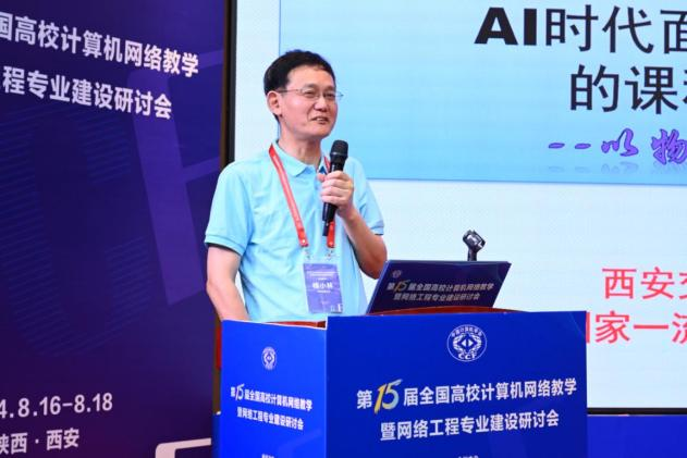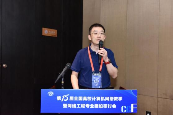 大会特邀报告环节由国防科技大学徐明教授,CCF互联网专委秘书长、东北大学易秀双教授,CCF网络与数据通信专委秘书长、西北大学王海教授主持。教育部高等学校计算机类教学指导委员会副主任、国家级教学名师、北京工业大学蒋宗礼教授作了题为《积极开展课程教学改革 确保课程目标有效达成》的报告,深入剖析了高等教育支撑引领教育强国战略的新要求下,高等学校课程教学改革的新思路与实践路径。长江学者、清华大学崔勇教授作了题为《“101计划”计算机网络课程探索与实践》的报告,解析了计算机网络创新思维培养过程,为计算机网络课程教学的优化升级提供了宝贵经验。教育部高等学校计算机类教学指导委员会委员、浙江省教学名师、温州大学施晓秋教授以《智能化背景下网络工程专业何去何从》为题,深刻分析了AI发展对网络技术与产业变革带来巨大变化与挑战,阐述了网络工程专业在智能化背景下的发展路径。西安邮电大学教务处副处长、陕西省教学名师仝秋娟教授以《特色强基数字赋能--西安邮电大学本科人才培养的创新与实践》为题,分享了西安邮电大学特色强基和数字赋能的信息人才培养理念和具体实践。CCF教育专委主任、教育部软件工程专业教学指导委员会委员、北京航空航天大学张莉教授围绕“网络化智能化时代计算机教育的机遇和挑战”,分析了ACM/IEEE计算机课程体系的胜任力模型和2024版工程教育认证标准,指出了计算机教育面临的机遇和挑战。国家级教学名师、西安交通大学桂小林教授以物联网工程专业为例,深入探讨了“AI时代面向产出的一流专业的课程体系建设探索”,为专业课程体系的建设提供了借鉴。中文信息学会青年工作委员会主任、面壁智能首席科学家、清华大学刘知远副教授聚焦“大模型与智能体技术及其在教育教学的实践探索”,展示了AI赋能教育教学的新图景。来自湖南新实网络科技有限公司、江苏省未来网络创新研究院、北京百度网讯科技有限公司等企业的技术专家也应邀就网络实践教学、产教融合、大模型时代的人才培养模式等主题在大会作特邀报告。