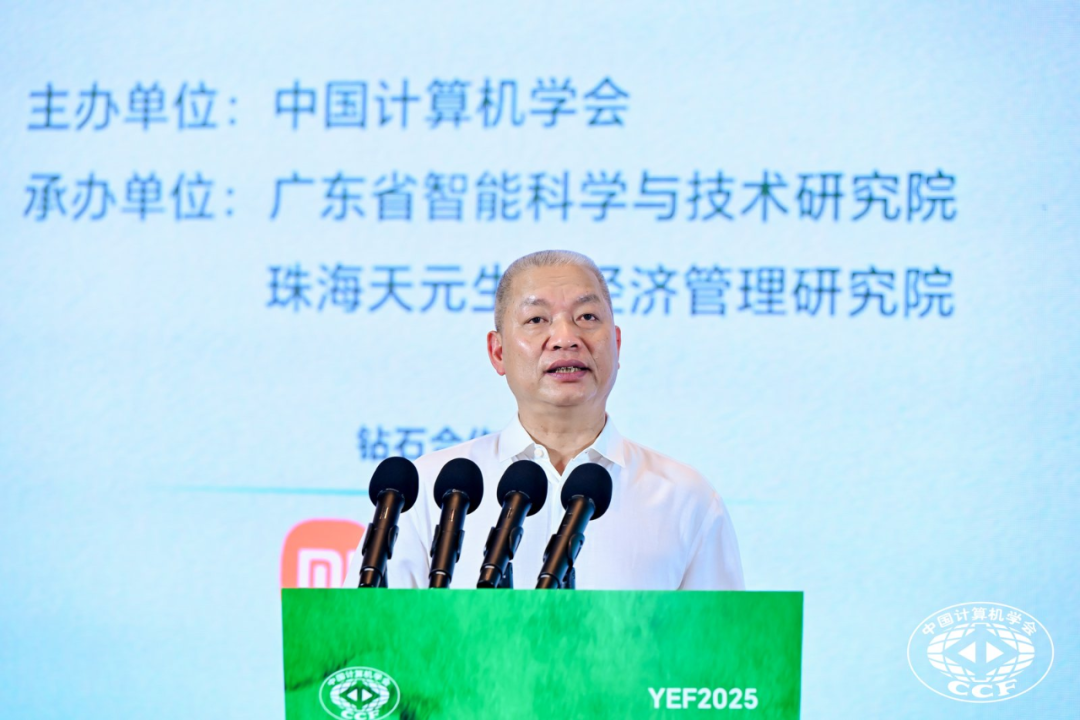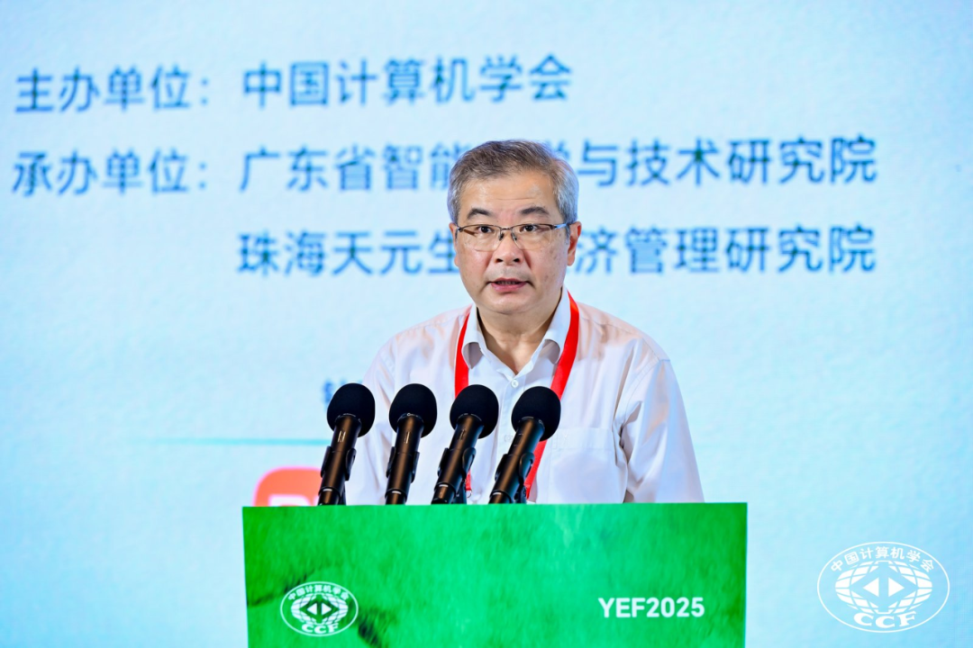 大会开幕式由YEF2025组织委员会主席,CCF杰出会员、理事、YOCSEF秘书长,北京赛博英杰科技有限公司创始人、董事长谭晓生主持。YEF2025大会主席,CCF会士、副理事长,华中科技大学教授金海;中国科学院院士,广东省智能科学与技术研究院院长,中国神经科学学会理事长张旭;横琴粤澳深度合作区执委会副主任符永革分别致辞。