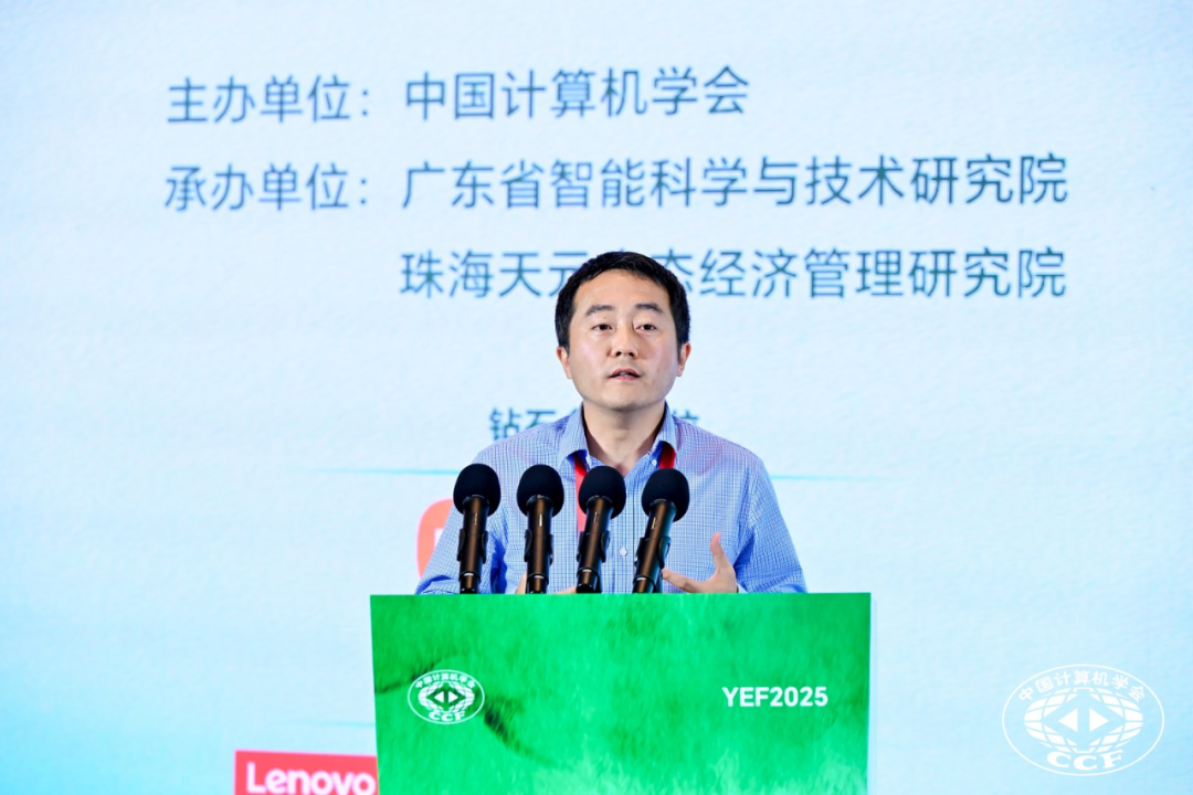 大会首日有2场特邀报告,讲者分别是中国科学院院士,广东省智能科学与技术研究院院长,中国神经科学学会理事长张旭;北京大学集成电路学院博导,国家杰青,浙江省北大信息技术高等研究院副院长叶乐。特邀报告环节的主持人是YEF2025程序委员会主席,CCF杰出会员、理事、副秘书长、青工委主任,清华大学长聘副教授崔鹏。
