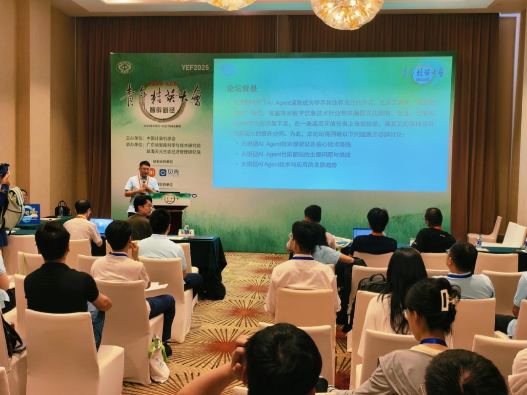 5月22日上午,由CCF主办,广东省智能科学与技术研究院、珠海天元生态经济管理研究院承办的2025 CCF青年精英大会(YEF2025)在横琴盛大开幕!本届大会以“智辟新径”为主题,邀请了150余位来自高校、科研院所、企业的学者、专家,将呈上包括7个特邀报告、5个思想秀报告、2场大会论坛、1场大学生学术秀和22场专题论坛的科技盛宴。