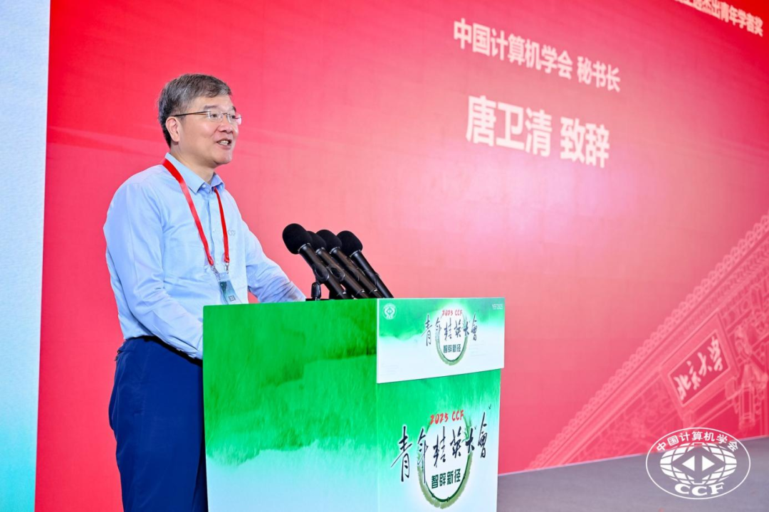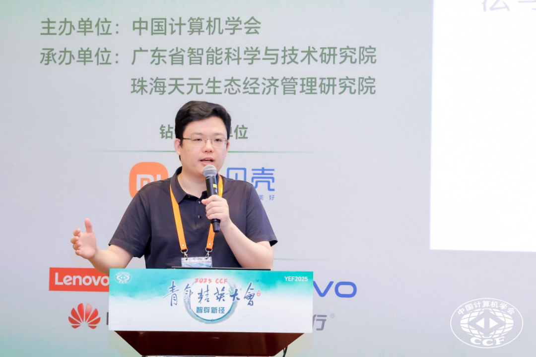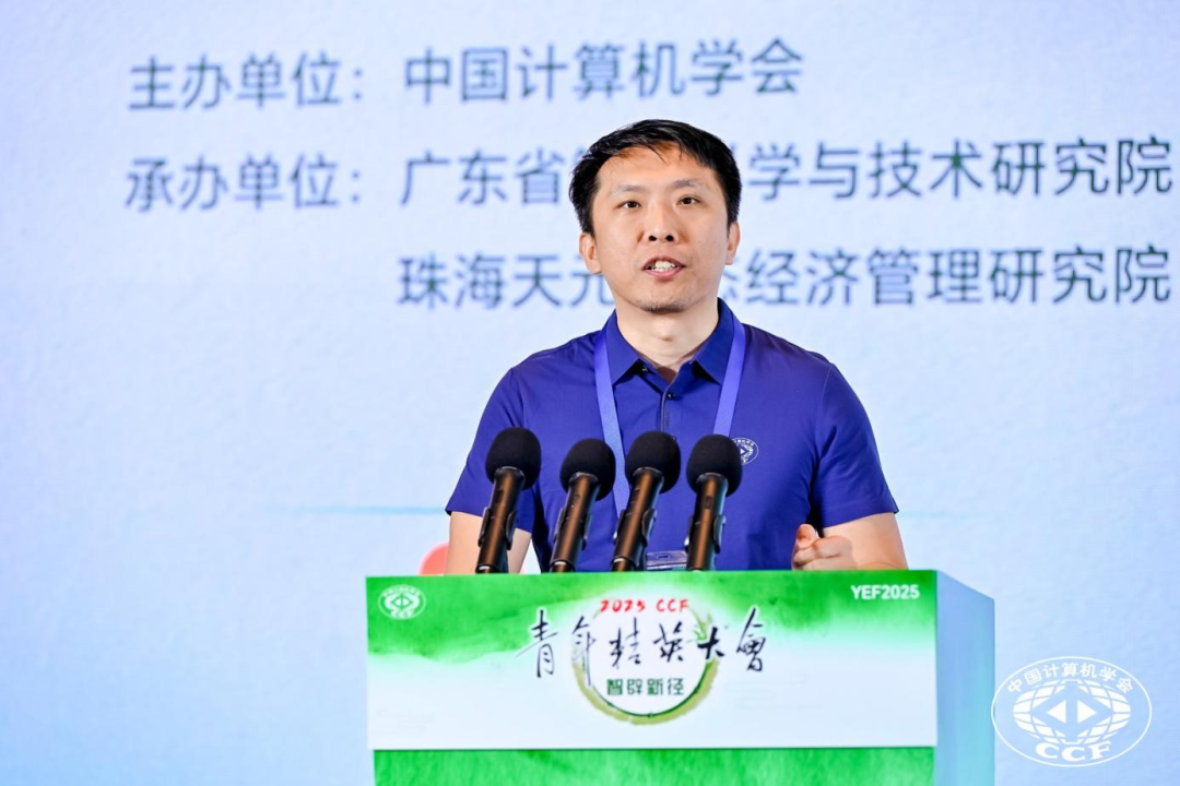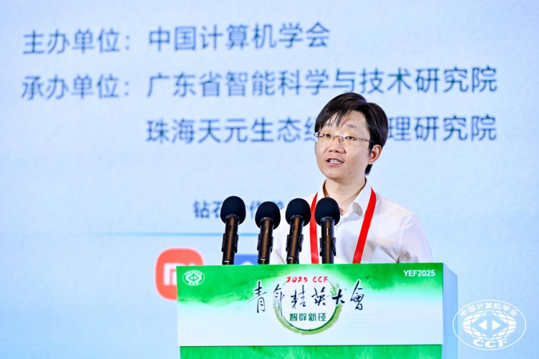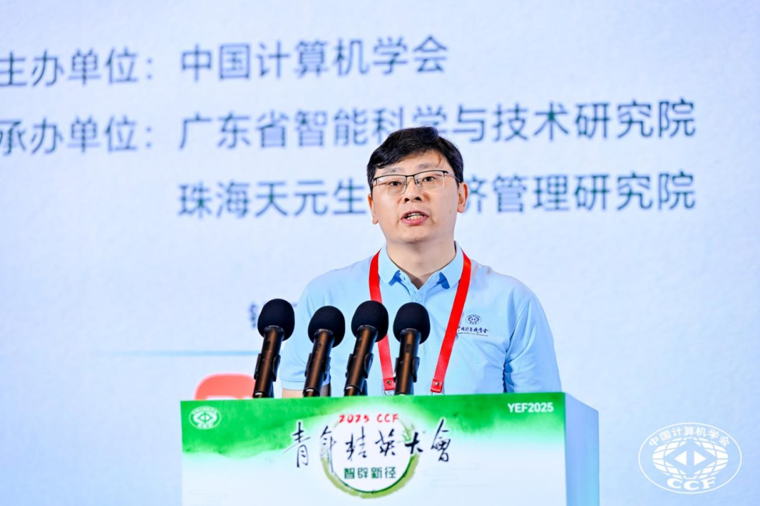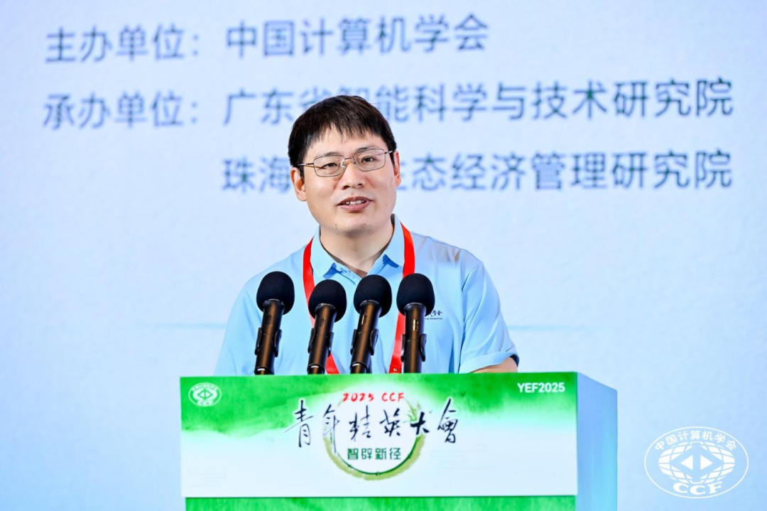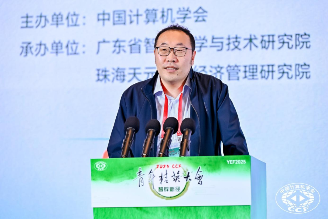 CCF YOCSEF AC主席,中国科学院计算技术研究所研究员沈华伟作特邀报告。沈华伟在特邀报告——《从社会计算到社会认知计算》,他以个人成长经历为主线,讲述了从社会计算到社会认知计算的研究转型与科研心路历程。沈华伟回顾了博士阶段的困惑——在复杂网络社区结构研究中面临领域模糊、评价标准缺失的挑战,虽完成学业但未出国、缺实践的遗憾。毕业后通过翻译著作和哈佛访学打开视野,转向社会计算,初期从事描述性研究(如论文作者领奖行为预测),后发现数据解释的主观局限性,转而探索人类行为预测(如手机定位预测)和社会调控。随着研究深入,意识到需求驱动创新的重要性,2021年毅然走出学术圈,投身算法治理等实际问题,参与国家网信办等部门的算法监管工作,在实践中体会到技术理想主义与工程落地的张力。最后,沈华伟以莱特兄弟造飞机、钱学森突破超音速理论为例,强调科研既要扎根现实需求,又需理论突破,呼吁青年学者在时代变革中保持开放与坚持,在“再努力一下”的成长中寻找自己的开花时节。