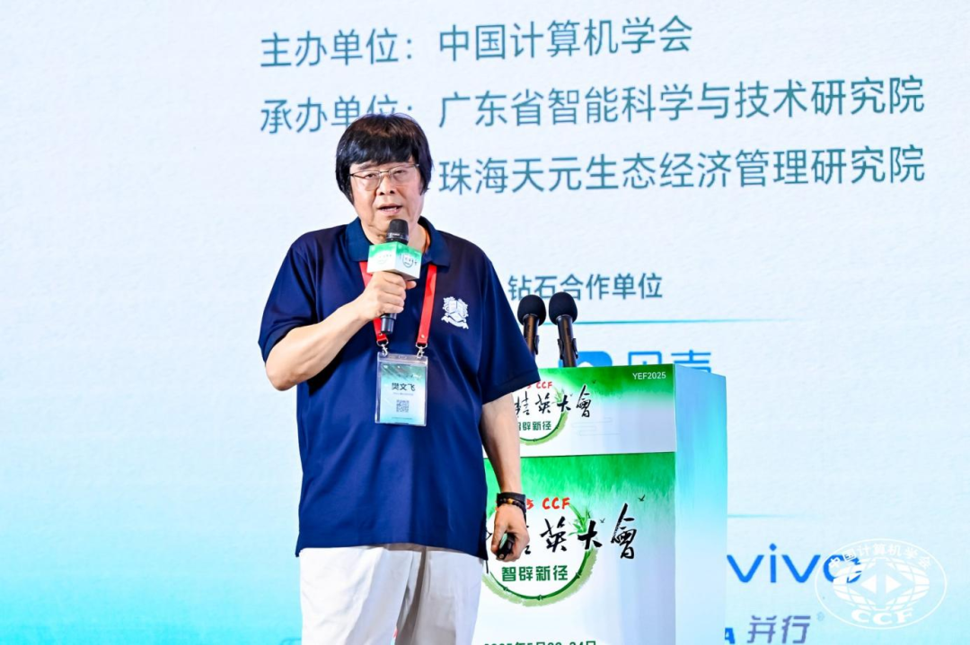 特邀报告环节由CCF YOCSEF AC主席,中国科学院计算技术研究所研究员沈华伟主持。CCF会士、中国科学院外籍院士、英国皇家学会院士、深圳计算科学研究院首席科学家樊文飞首先作特邀报告。