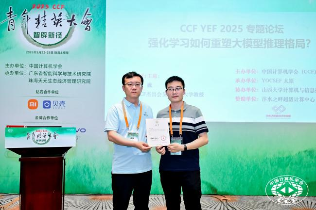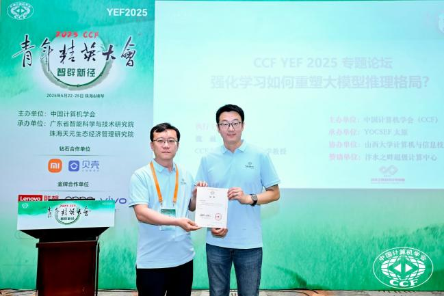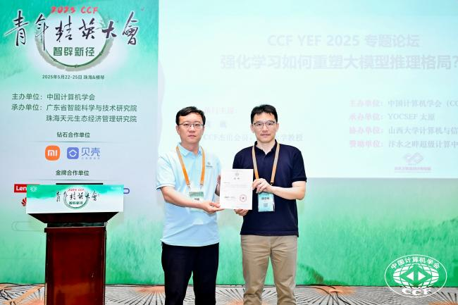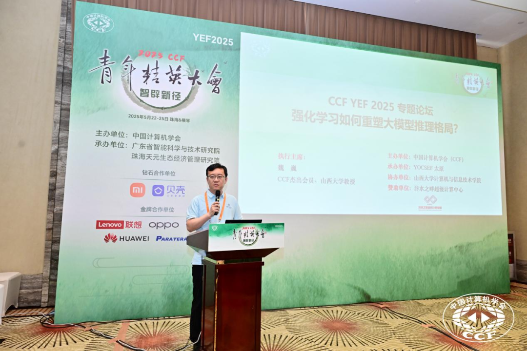 2025年5月22日下午,YEF2025“强化学习如何重塑大模型推理格局?”专题论坛在珠海横琴湾会议中心510会议室成功举办。该专题论坛由CCF主办,CCF YOCSEF太原分论坛承办,山西大学计算机与信息技术学院协办,汴水之畔超级计算中心赞助,CCF杰出会员、山西大学魏巍教授担任论坛主席。论坛邀请了来自清华大学、天津大学、复旦大学等高校的专家学者,围绕强化学习与大模型推理的深度融合展开前沿探讨,聚焦技术突破、应用场景与未来趋势,为大模型发展注入新动能。