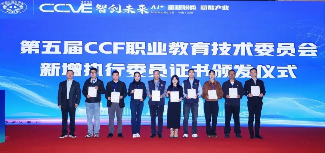 2025年11月1日,由中国计算机学会(CCF)主办,CCF职业教育发展委员会(CCF VC)与武汉软件工程职业学院共同承办的第九届CCF职业教育大会(CCVE 2025)在武汉召开。大会以“智创未来:Al+重塑职教,赋能产业”为主题,汇聚300余位职业教育领域专家学者、院校代表及企业嘉宾,共同探索AI与职业教育深度融合的创新路径,推动教育链、人才链与产业链有机衔接,助力产业升级与新质生产力发展。